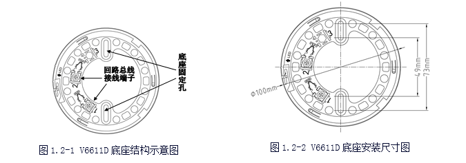 V6611D型探測器底座與V6611A型探測器底座通用,是V6611A型探測器底座的改進型。其用于安裝V6621、V6621(Ex)、V6631、V6631(Ex)、V6641等型號的編碼型火災探測器。